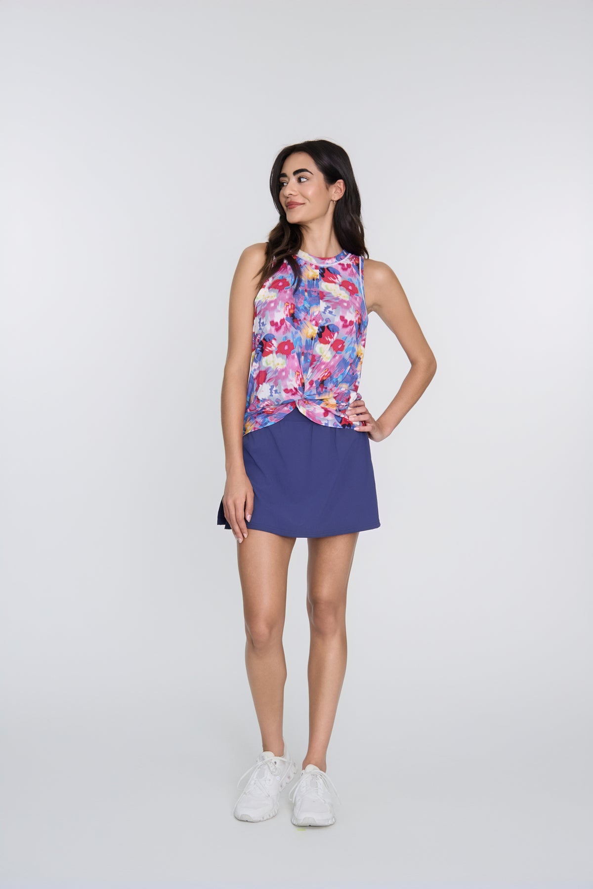 A twist on your everyday tank. The Shay Knot Top adds instant style with a knotted front, relaxed fit, and lightweight stretch fabric that keeps up with every swing. It’s breathable, flattering, and made to pair with your favorite pickleball shorts, skirts, or leggings.